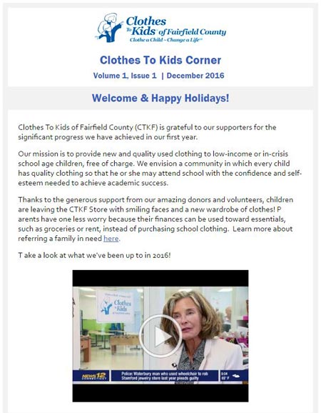 Please enjoy the very first issue of “Clothes To Kids Corner”, the new online newsletter of Clothes To Kids of Fairfield County!